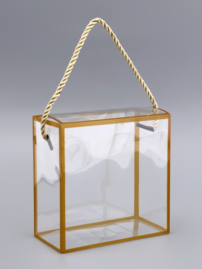 Коробка из PET с ручками, золотая, 30×15×20 см