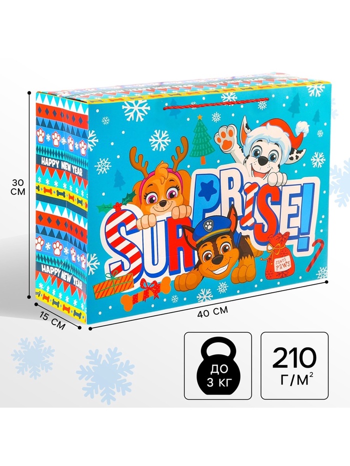 Пакет подарочный-коробка Surprise, 15×40×30 см, Щенячий патруль