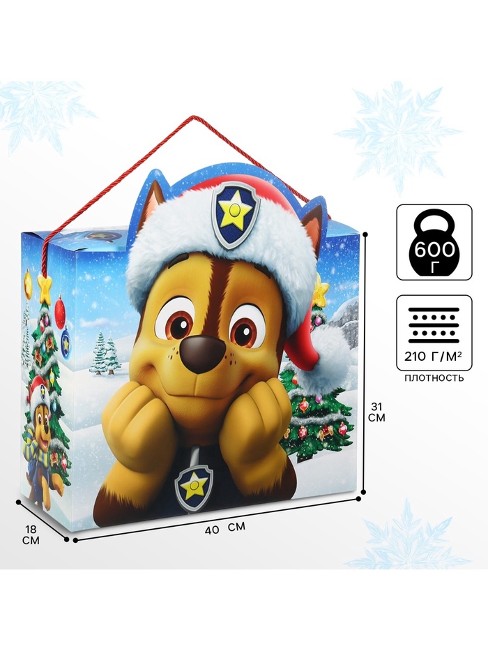 Пакет подарочный-коробка новогодний «Твой подарочек» 40×31×18 см, Щенячий патруль
