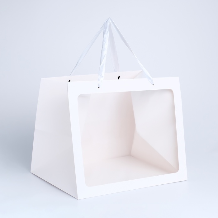 Пакет подарочный с широким дном и окном 25×19×18 см, белый