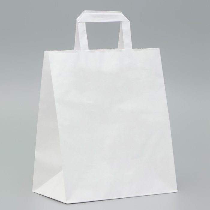 Пакет крафт без печати, белый, плоская ручка 24 х 14 х 28 см