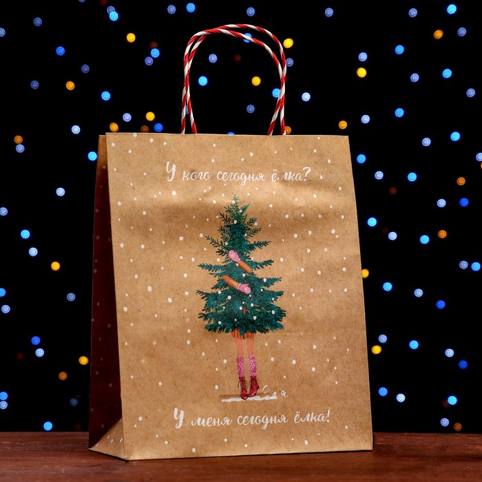 Пакет подарочный "У кого сегодня ёлка?" 26 х 32 х 12 см.