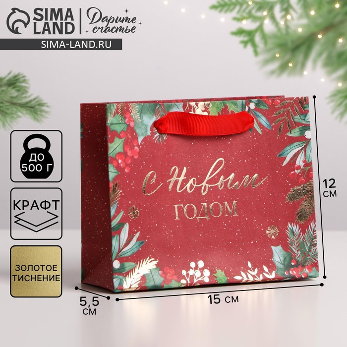 Пакет подарочный новогодний крафтовый «Новогоднее настроение», S 15 х 12 х 5.5 см
