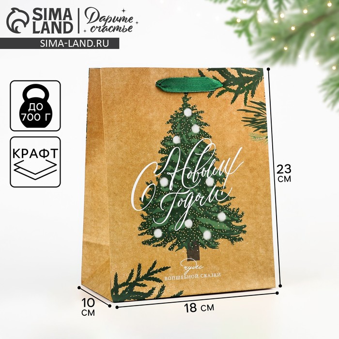 Пакет подарочный новогодний крафтовый Forest, 32 х 28 х 15 см