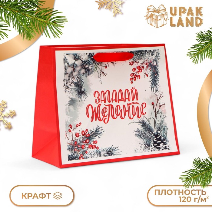 Пакет подарочный новогодний бумажный, «Загадай желание», 24×20×11 см