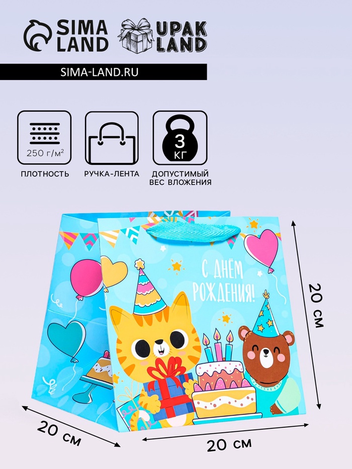 Пакет для торта и коробок, с широким дном «Сладости», 20×20×20 см