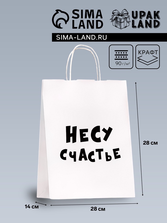 Пакет подарочный «Несу счастье », 24×14×28 см