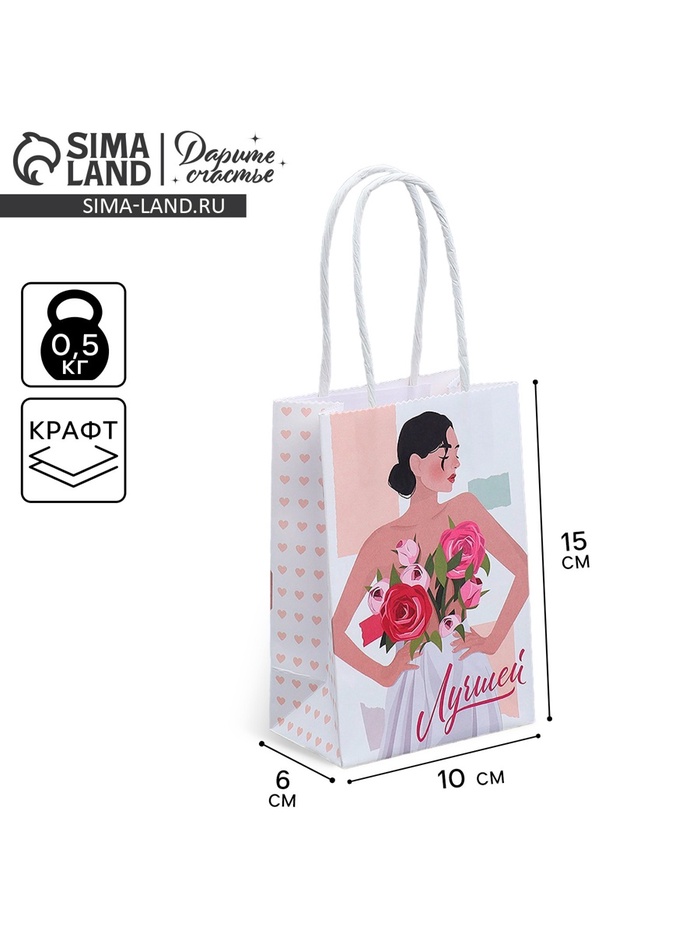 Пакет подарочный крафтовый, упаковка, «Лучшей», 15 х 10 х 6 см