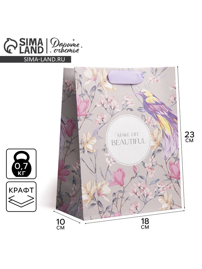 Пакет подарочный крафтовый, упаковка, «Цветочное настроение», ML 27 х 23 х 11.5 см