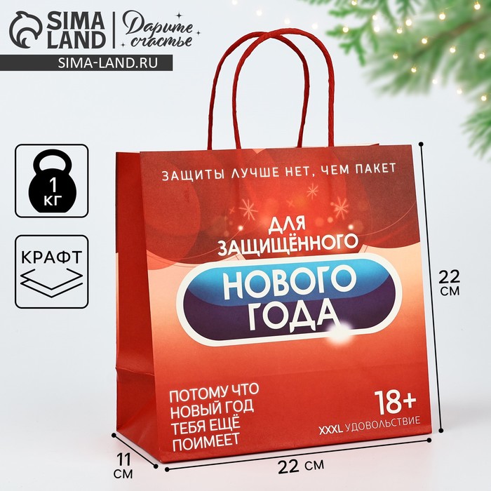 Пакет подарочный новогодний «Защищенный Новый год», 22 х 22 х 11 см