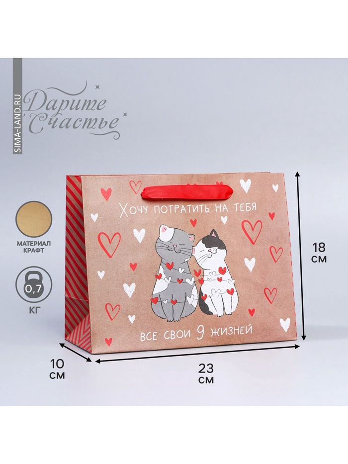 Пакет подарочный крафтовый, упаковка, «Потрачу девять жизней», MS 18 х 23 х 8 см