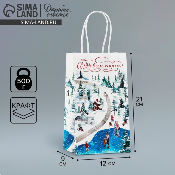 Пакет подарочный новогодний «С Новым годом», белый крафт, 12 х 21 х 9 см
