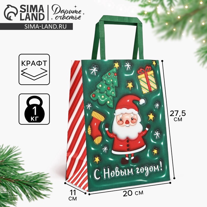 Пакет подарочный новогодний «Дед Мороз», 20 х 11 х 27.5 см