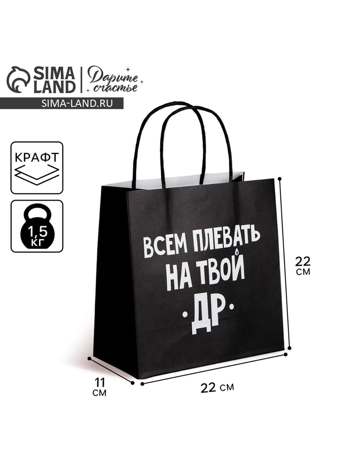 Пакет подарочный, упаковка, «Всем плевать на твой др», 22 х 22 х 11 см