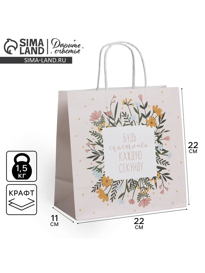 Пакет подарочный, упаковка, «Счастье», 22 х 22 х 11 см