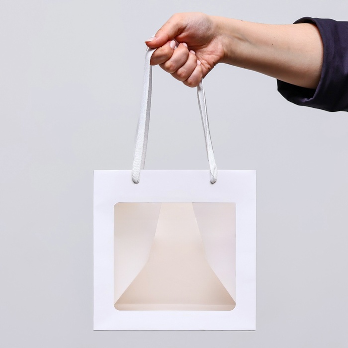 Пакет подарочный, крафт, с окном, «Белый», 20×20×20 см