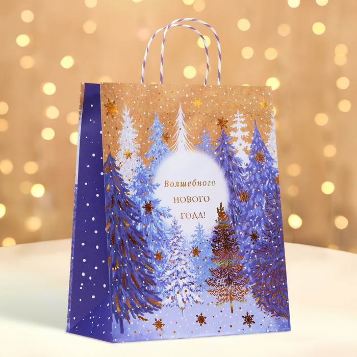 Пакет бумажный подарочный новогодний крафт «Ёлка» 27×21×11 см