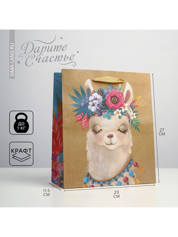 Пакет подарочный крафтовый, упаковка, «Лама», ML 23 х 27 х 11.5 см