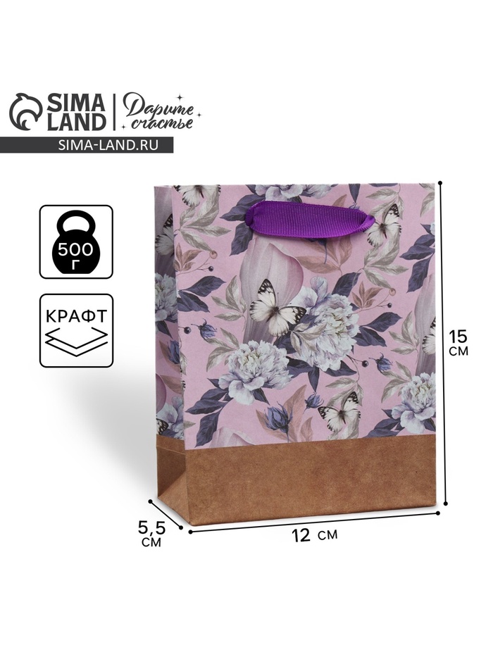 Пакет подарочный крафтовый «Цветочный» 22 х 25 х 12 см