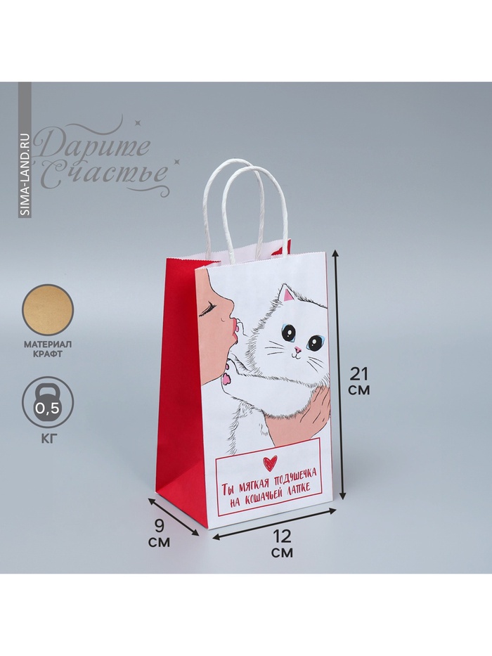 Пакет подарочный крафтовый, упаковка, «Мягкая моя», 12 х 21 х 9 см