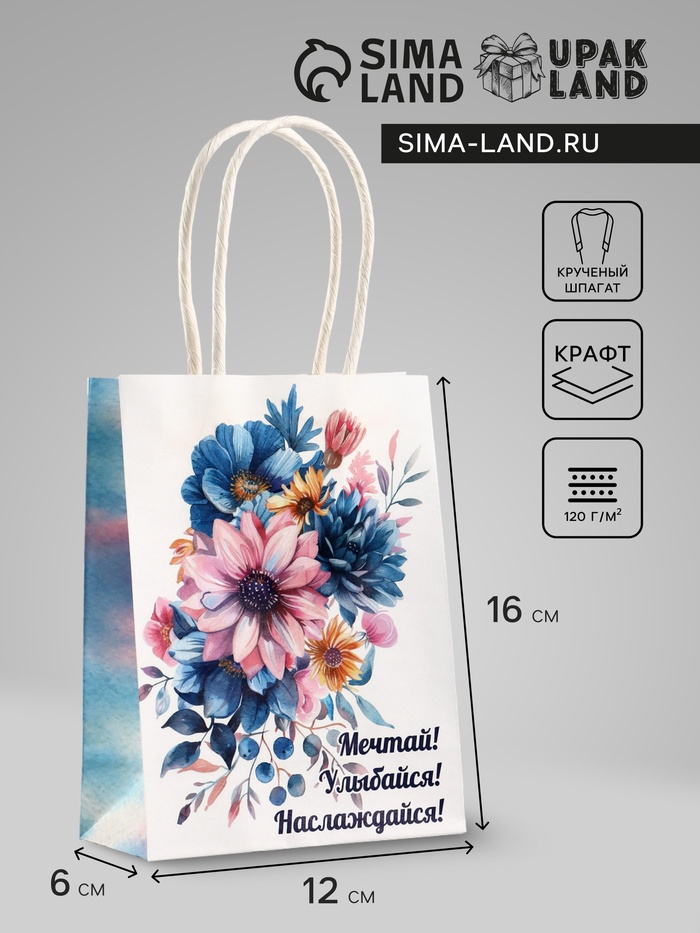 Пакет подарочный крафт,«Мечтай!», 12×6×16 см