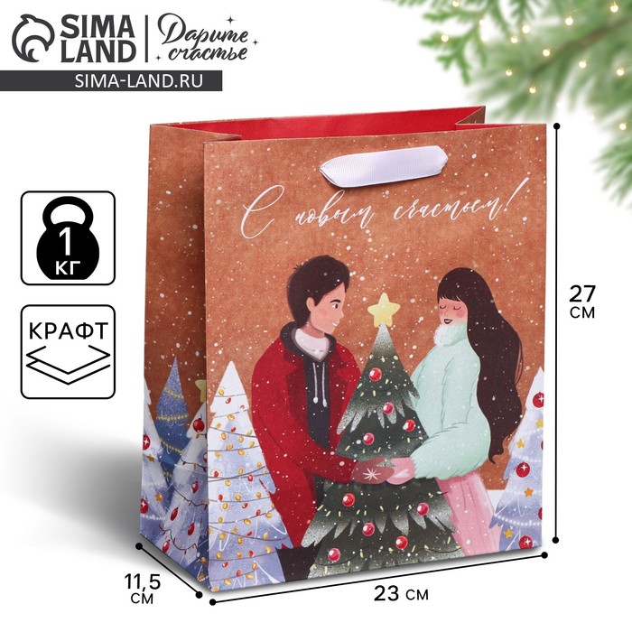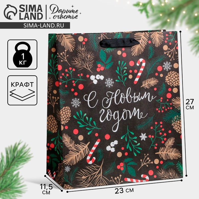 Пакет подарочный новогодний крафтовый «Еловый лес», ML 23 х 27 х 11.5 см