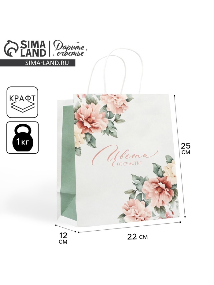 Пакет подарочный крафтовый, упаковка, «Цвети от счастья», 22 х 25 х 12 см