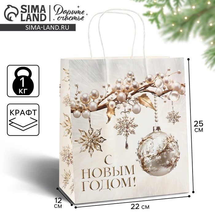 Пакет подарочный новогодний «С Новым годом», белый крафт, 22 х 25 х 12 см