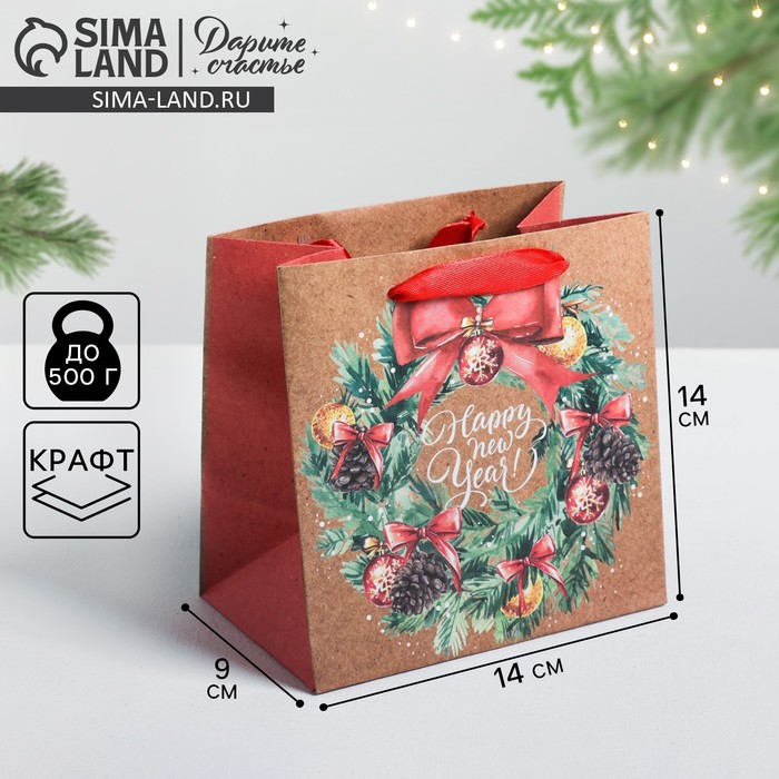 Пакет подарочный новогодний крафтовый квадратный «С Новым годом», 14 х 14 х 9 см