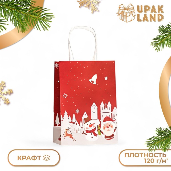 Пакет бумажный подарочный новогодний крафт «Атмосфера Нового Года» 16×12×6 см
