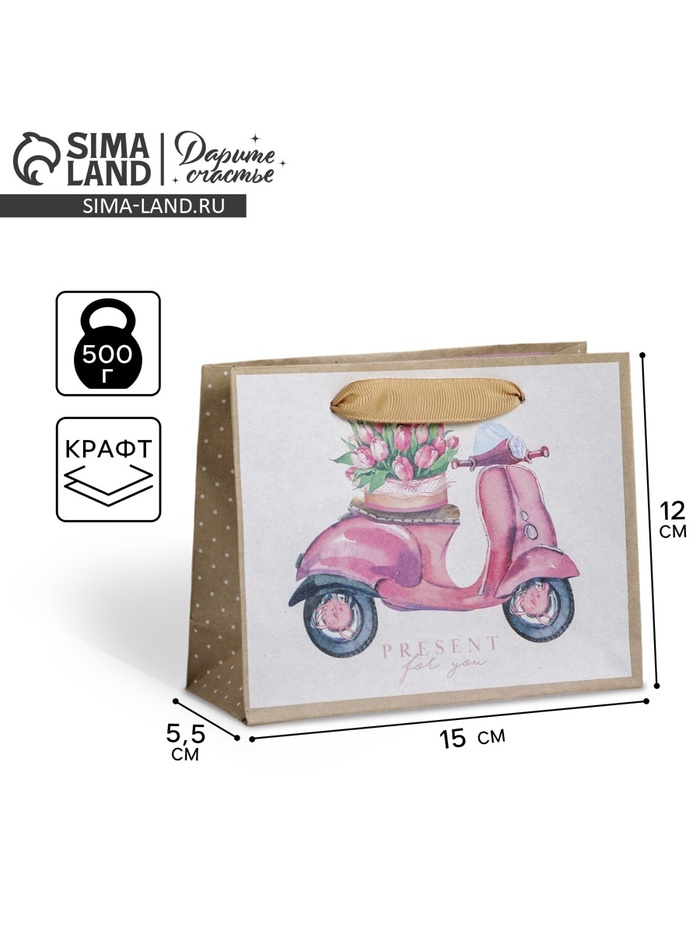 Пакет подарочный крафтовый, упаковка, «Present for you», 15 х 12 х 5.5 см