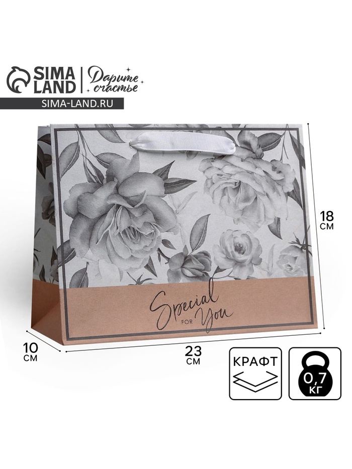 Пакет подарочный крафтовый, упаковка, Special for you, MS 23 х 18 х 10 см