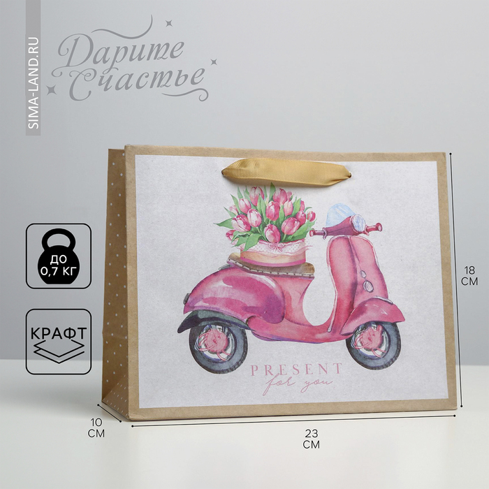 Пакет подарочный крафтовый, упаковка, Present for you, MS 23×18×10 см