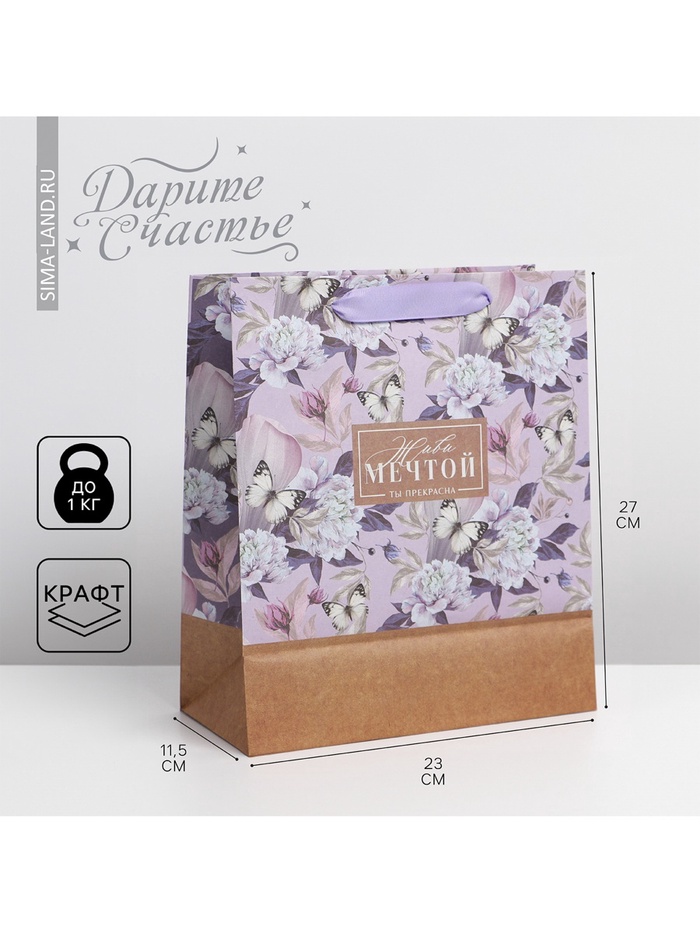 Пакет подарочный крафтовый, упаковка, «Живи мечтой», ML 23 х 27 х 11.5 см