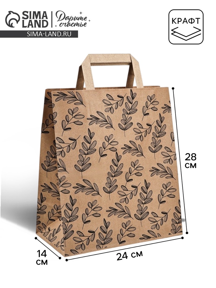 Пакет подарочный крафтовый, упаковка, «Ботаника», 12 х 21 х 9 см