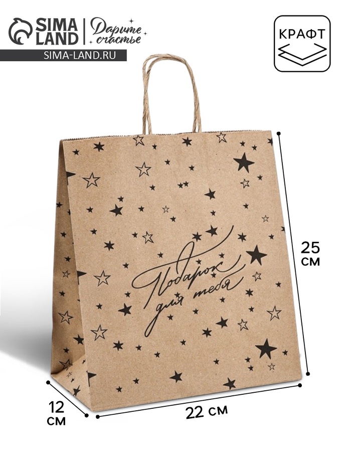 Пакет подарочный крафтовый «Подарок для тебя» 22 х 25 х 12 см