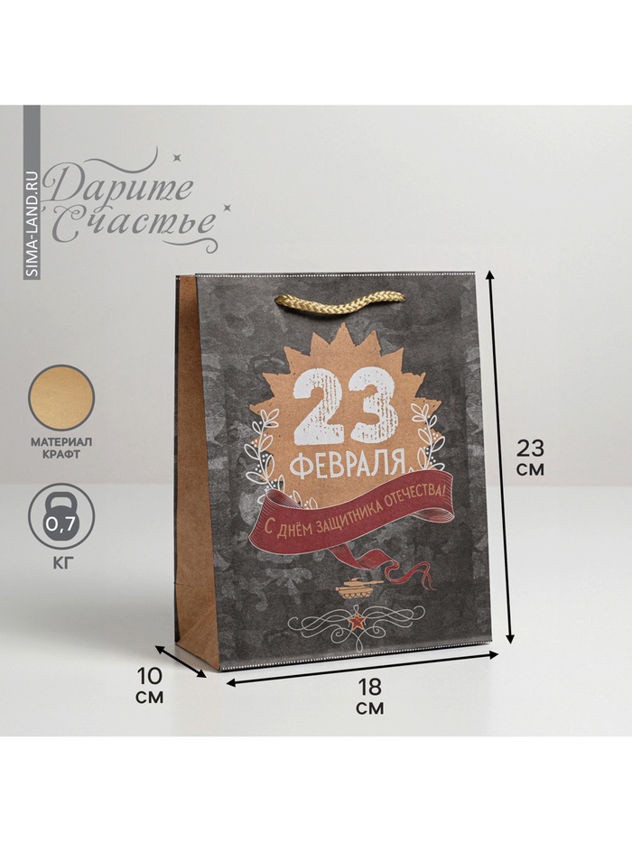 Пакет подарочный крафтовый, упаковка, «С 23 февраля», MS 18 х 23 х 8 см