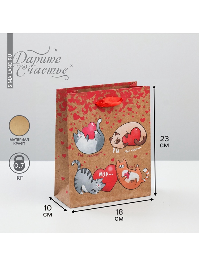 Пакет подарочный крафтовый, упаковка, «Мяу», MS 18 х 23 х 10 см