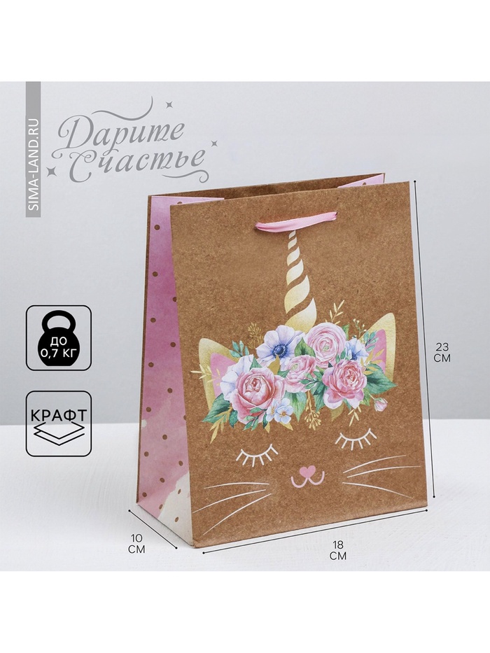 Пакет подарочный крафтовый, упаковка, «Котик», 25 х 22 х 12 см