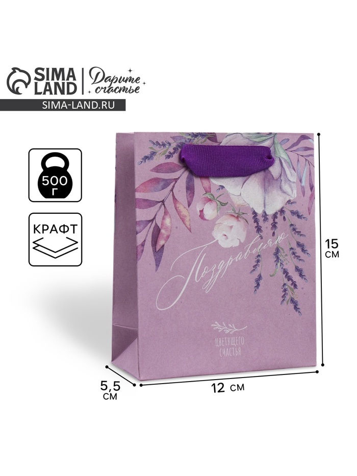 Пакет подарочный крафтовый, упаковка, «Поздравляю», S 12 х 15 х 5.5 см
