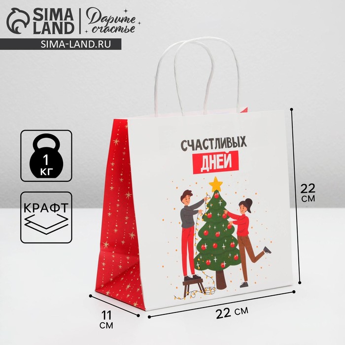 Пакет подарочный новогодний «Счастливых дней», 22 х 22 х 11 см