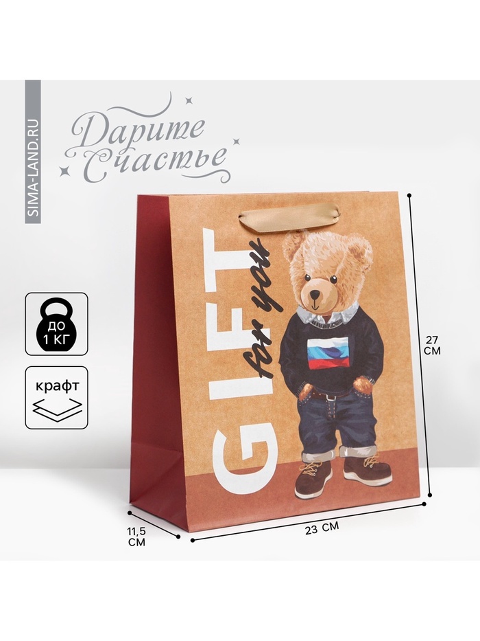 Пакет подарочный крафтовый, упаковка, «Только тебе», ML 23 х 27 х 11.5 см