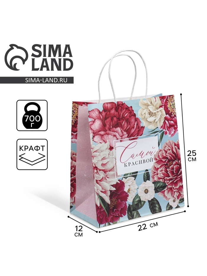 Пакет подарочный крафтовый, упаковка, «Цветочный», 22 х 25 х 12 см