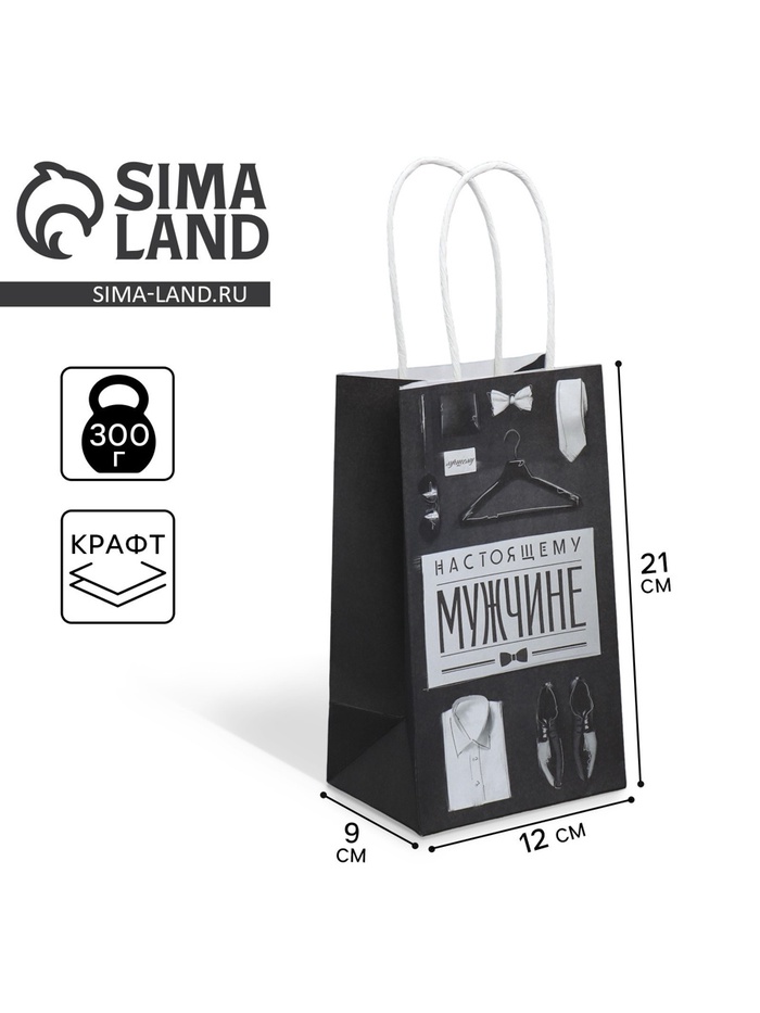 Пакет подарочный крафтовый, упаковка, «Мужские атрибуты», 12 х 21 х 9 см
