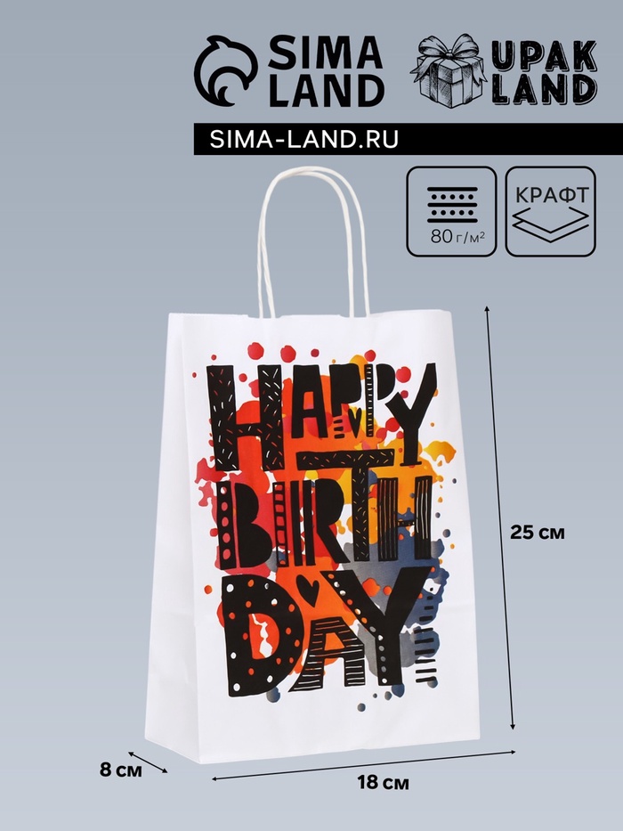 Пакет крафт «С днём рождения!», 18×8×25 см
