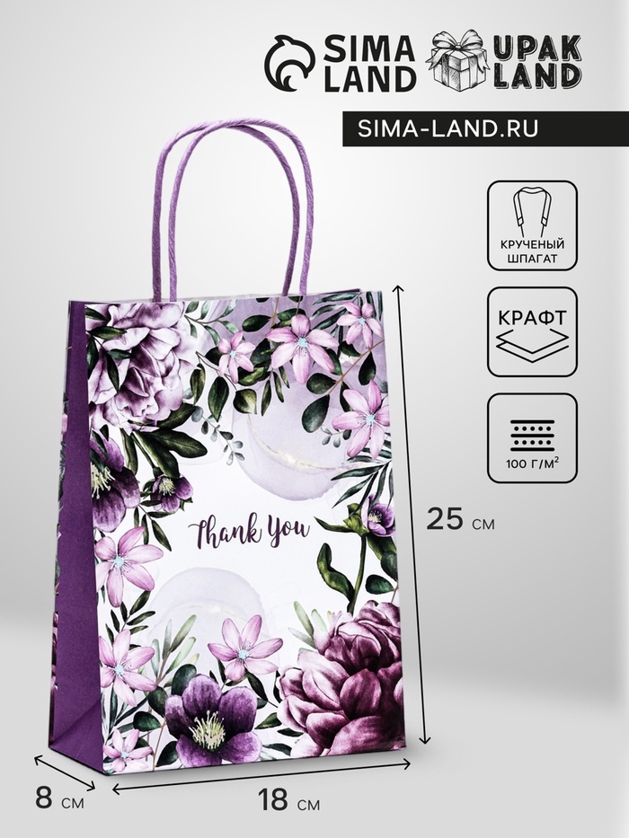 Пакет крафт «Спасибо» 18×8×25 см