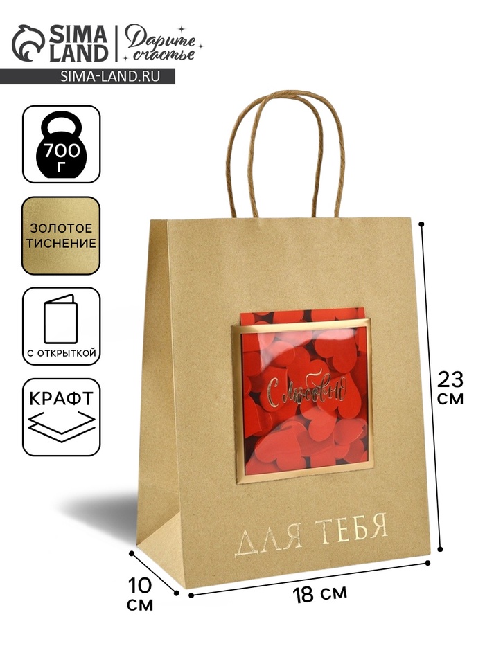 Пакет крафт «Подарок для тебя» 18×8×25 см