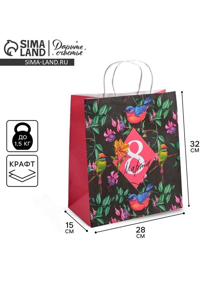 Пакет подарочный крафт, упаковка, «С 8 марта», 28 х 32 х 15 см