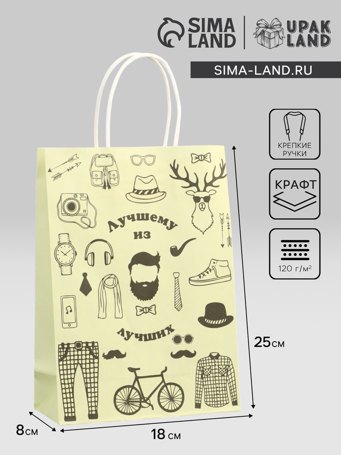 Пакет подарочный крафт «Лучшему мужчине!» 18×8×25 см