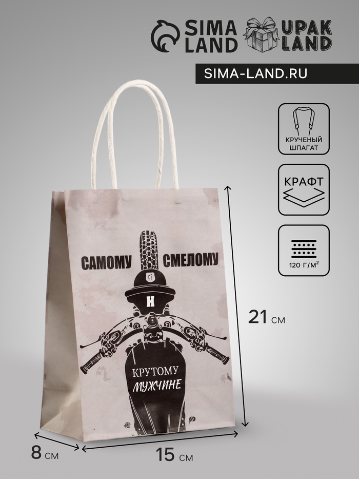 Пакет подарочный крафт «Самому смелому», 15×8×21 см